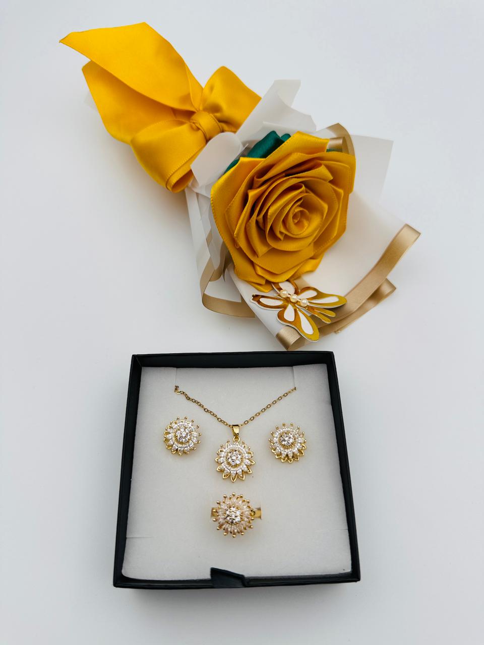 Collar🌻 + Aretes 🌻 + Pulsera Regulable 🌻+Anillo Ajustable 🌻